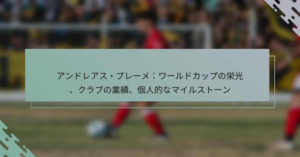 アンドレアス・ブレーメのキャリアは、サッカーへの貢献を際立たせる重要なクラブの業績によって特徴づけられています。彼は複数のトップクラブで重要な役割を果たし、多くのタイトルを獲得し、彼が代表したチームに永続的な影響を与えました。
