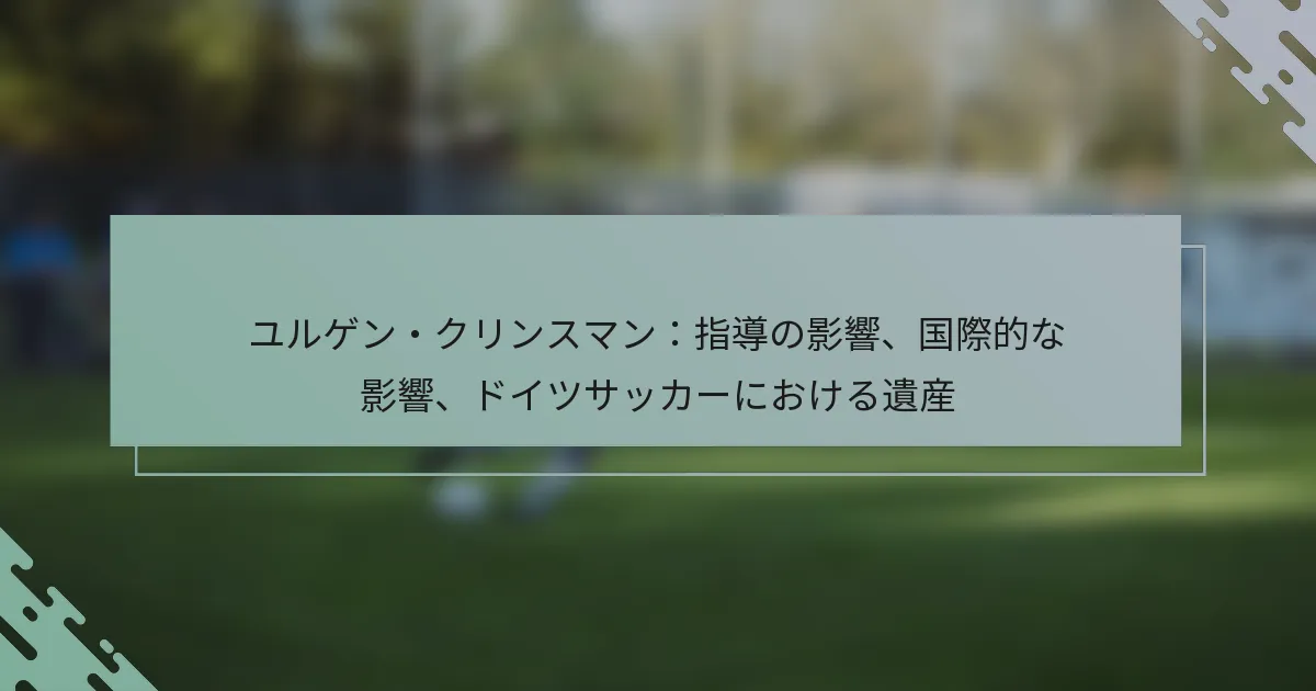 ユルゲン・クリンスマンのドイツサッカーにおける遺産とは何ですか?
