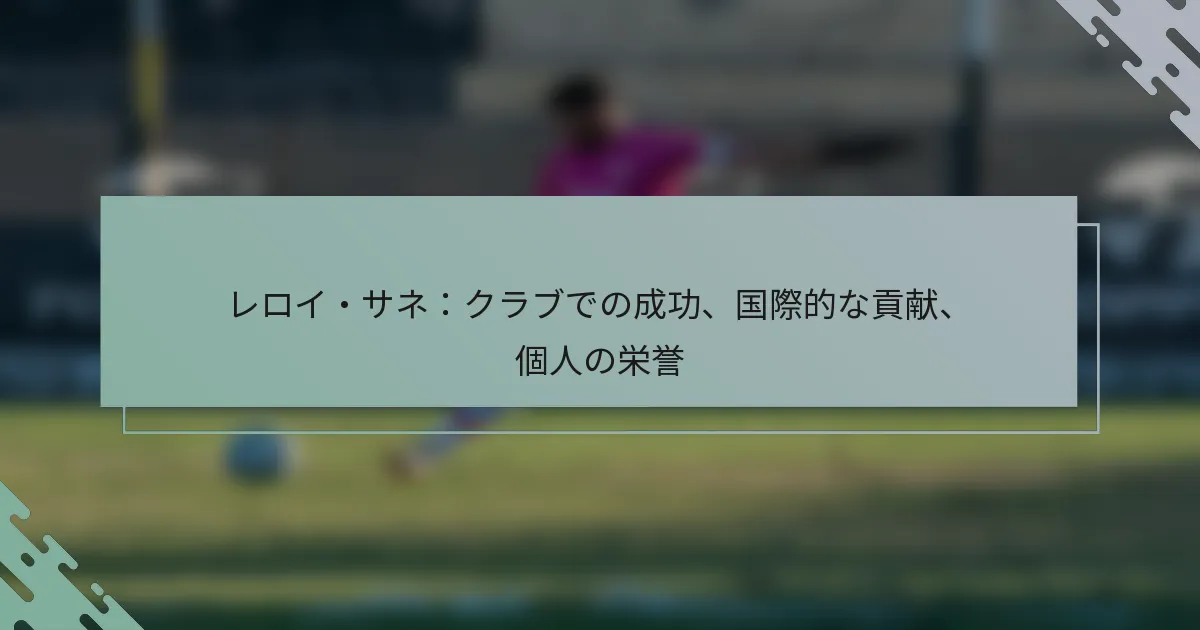レロイ・サネは、クラブと国際レベルの両方で重要な成功を収めており、数々のタイトルと際立ったパフォーマンスを通じてその才能を示しています。彼の貢献は勝利に繋がっただけでなく、現代サッカーにおける重要な選手としての評判を確固たるものにしました。