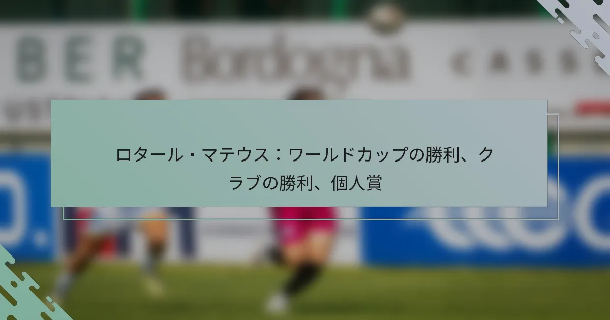 ワールドカップでの成功に加え、マテウスはブンデスリーガでも複数の栄誉を受け、バイエルン・ミュンヘンやボルシア・メンヒェングラートバッハのようなクラブでのパフォーマンスが称賛されました。彼のクラブレベルでの栄誉には、いくつかのリーグタイトルや国内カップが含まれ、ドイツサッカーにおける彼の遺産をさらに強固なものにしました。