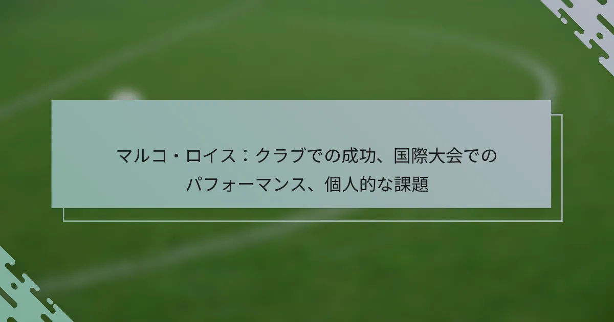 マルコ・ロイスは、キャリアを通じて深刻な怪我、プロとしての挫折、私生活の出来事など、重要な個人的な課題に直面してきました。これらの要因は、彼のサッカーにおける旅を形作り、フィールドでのパフォーマンスやメンタルのレジリエンスに影響を与えています。